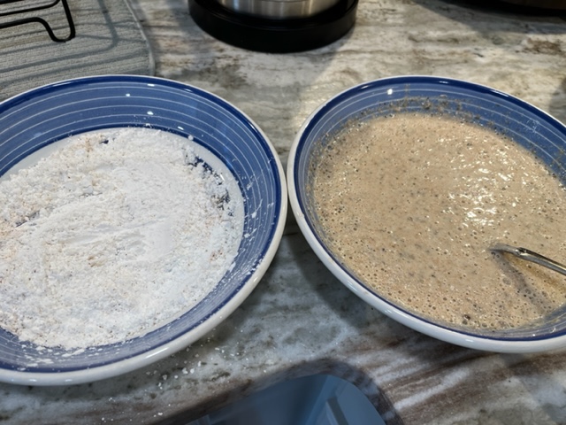 5. Mix milk into a bowl with flour. (or if you don’t want it wet, you can keep milk and flour separate)