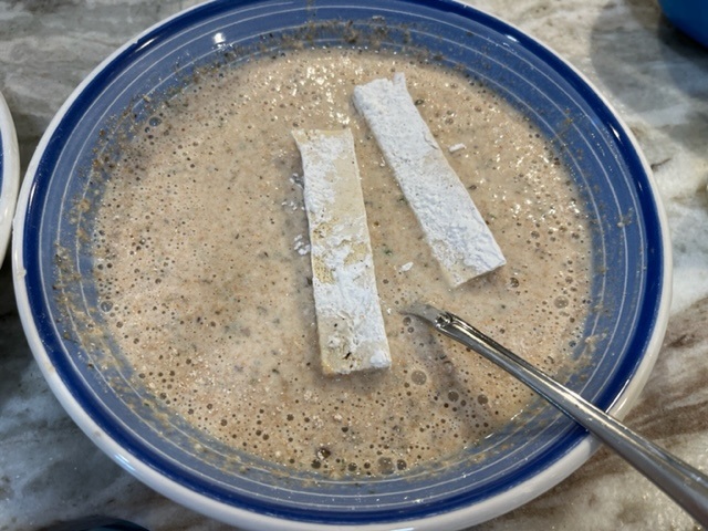 - If doing an extra bread crumb dip, put these into a bowl with some more spices.