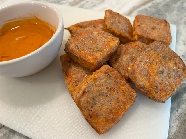 One of the hesitations I had about “going vegan” in January (veganuary) was having pieces of “stuff” to nibble on. I like to have something to chew, besides a bean or veggie in my Asian stir fries and in my tacos. I’m not a huge fan of chicken nuggets, but do like a little “something” in my salads, too. Tofu is an easy substitute that fits the bill for all of these.