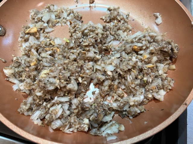 - Chop onions and mushrooms finely or pulse in a food processor (you want pieces, not a paste).