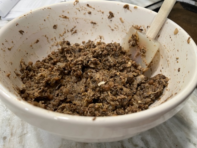 - 1 cup of dried green/brown lentils, cooked (or 2 ½ cups cooked and drained lentils)