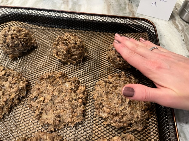 - Scoop and shape into patties onto a parchment-lined pan. You can also put them directly on an air fryer tray/basket.