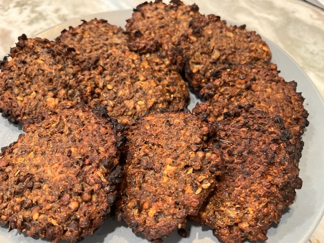 - Bake in a preheated oven at 350F for 15 minutes. Flip and bake at 400F for 10 minutes, checking for burning. When the patties have evenly browned and look a bit crispy, they are finished.